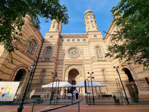 Feeling a little deflated we got the metro back to the city centre and headed to another famous building we had been recommended: the Dohány Street Synagogue, which is the second largest synagogue in the world. The building was beautiful and it was interesting to read about how it was designed in a Moorish style, looking something like a building at the Alhambra complex in Granada. Apparently the architect did it like this since there is no such thing as Jewish architecture historically, and he wanted to design it with a Middle Eastern feel. After this we walked back to the apartment taking in more of the city streets. I then went for a lovely run along the Danube, first on the Pest side, then running over the Margaret Bridge to see the park in the middle of the river, and then back along the Buda side, getting to take in the much better view of the Parliament Building. We then went to a Hungarian restaurant (Púder Bárszínház) near our apartment to try some authentic Goulash (delicious) and local beer and wine.