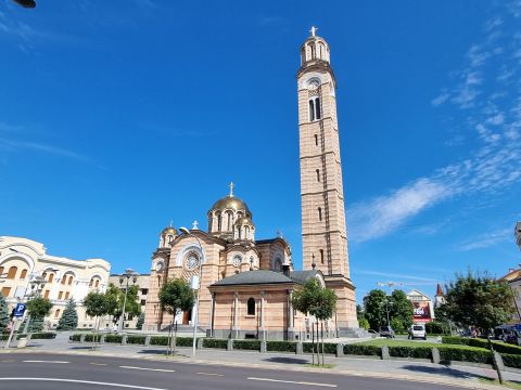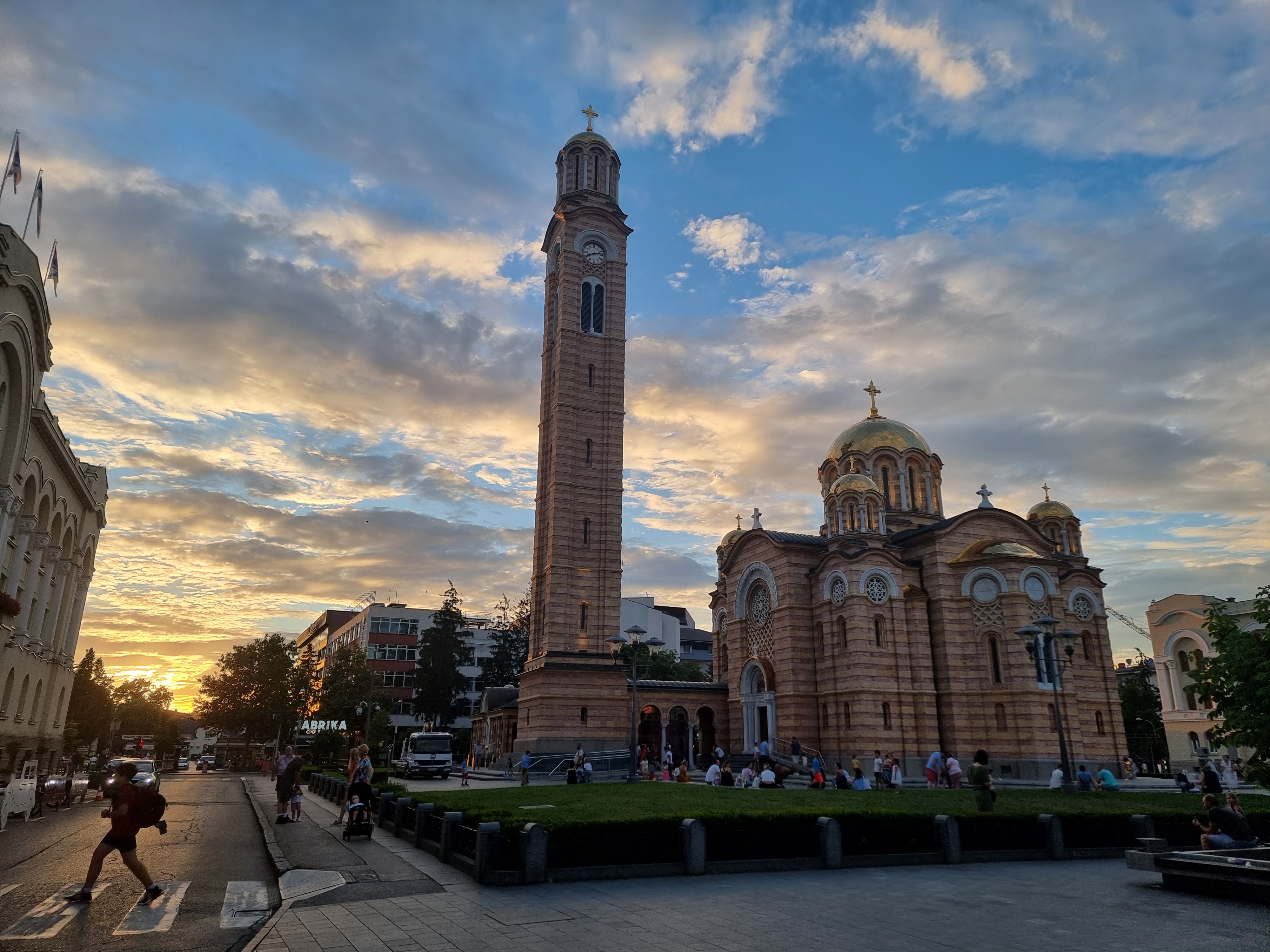 We spent the rest of the day in Banja Luka. I had never heard of it before, but turns out it is the 2nd city of the country, and the capital of the Srpska (Serb) Republic half of the country, Sarajevo being the capital of the other half. It was 33 degrees in the middle of the afternoon, but we managed to find quite a bit of shade and have a walk down the very pleasant main street, past an impressive church, and onwards to the Ferhadija mosque, which was reconstructed only recently. I won't make this blog a history lesson, but I recommend reading about the city's recent history and the mosque - we found it very interesting! At night the city really came alive, feeling more like a holiday resort than a capital city. The streets were full of all sorts of people, from families to young people going out, music of all sorts blaring from bars and restaurants, and our hotel has a live singer and band going on late into the night - seems they are in full on summer holiday mode here. We took it all in, and went for a nice walk along the river and around the medieval Kastle Fortress, which looked quite impressive, though I struggled to find any good history about it online.