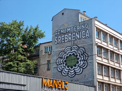 The original plan was to leave Sarajevo early this morning, but we delayed our departure in order to do another walking tour about the Yugoslavia War and the Siege of Sarajevo; we thought it would be a shame to leave Sarajevo without learning a bit more about the darker part of the city's history. Before any of that, I went for a lovely morning run through the tree-lined parks along the river, which took me past many apartment blocks still scarred by mortar shrapnel - something which you can't help but notice on so many buildings in the city.