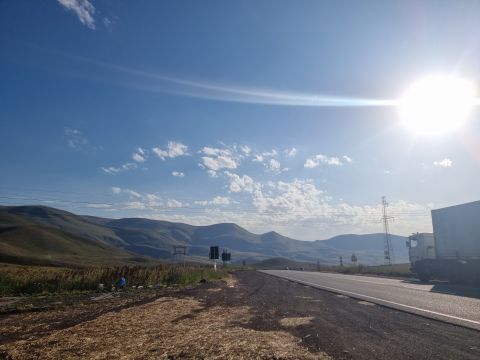Shortly after our stop in Vayk, we climbed over a the beautiful Vorotan mountain pass, with a sculpture at the top with some market traders. Unfortunately the tourist infrastructure isn't quite there yet in Armenia for them to tell you details of the mountain pass, the altitude, and great viewpoints to take pictures, so you have to work these things out on your own. This pass was no exception, and we aren't sure what the sculptures at the top meant, if anything! Once over the pass, things just as quickly started turning green again, the temperatures fell quite a bit, and farmland returned. This is one thing which has really stood out to us in the Caucasus, just how quickly the landscape changes and how many different landscapes/climates there are in such a relatively small area.