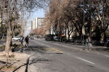 Photos of the day: the view from the top of Cerro San Cristobal, and armoured vans in the deserted streets, with tear gas in the distance. and