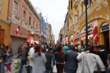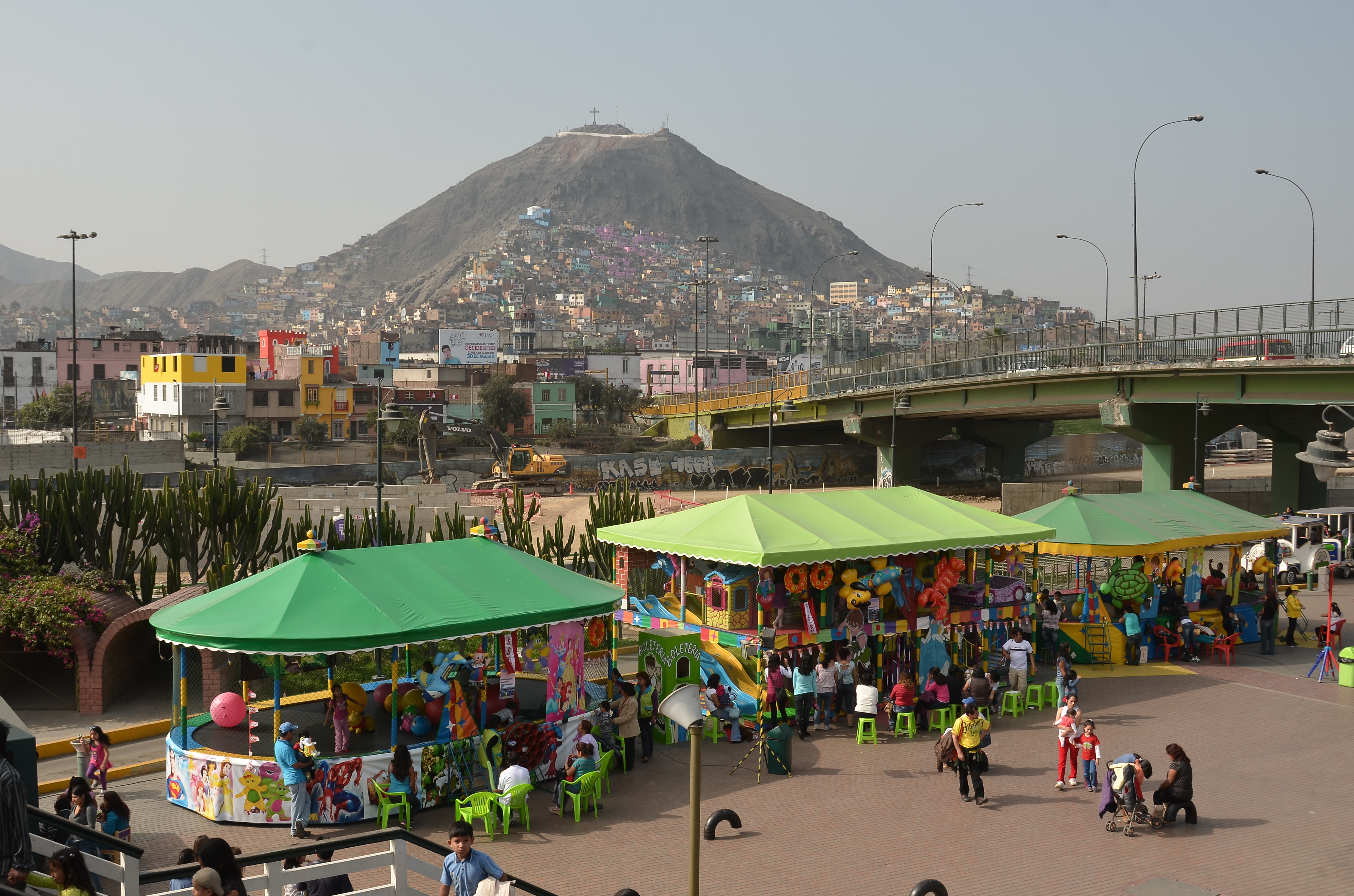 Photos of the day: View from Parque de la Muralla of a favela on the hillside, Marc enjoying a horse, and his Cuy, traditional dancers in the Plaza Mayor, and the bustling Jiron de la Union